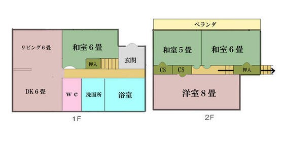 Segunda Planta (Zona Privada): El nivel superior alberga tres dormitorios. Hay dos habitaciones japonesas (Tatami) conectadas (una de 6-jo y otra de 5-jo, aprox. 9.7 m² / 105 ft² y 8.1 m² / 87 ft² respectivamente), que dan a una amplia Veranda. Además, hay una gran habitación de estilo occidental de 8-jo (aprox. 12.9 m² / 139 ft²) con amplio espacio de armarios (CS), perfecta como dormitorio principal.