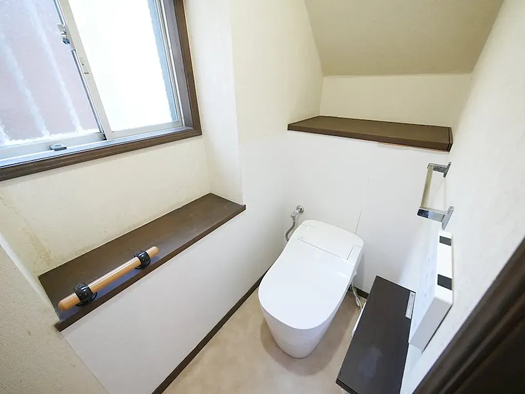La planta superior cuenta con tres dormitorios de estilo occidental y mucho almacenamiento.