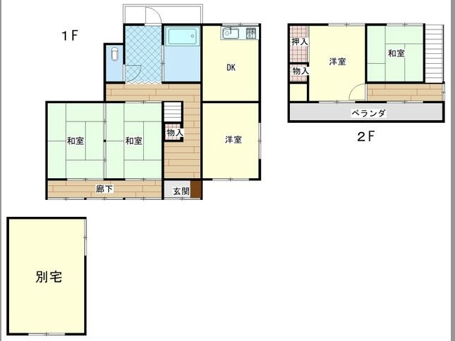 La primera planta (2F) dispone de dos dormitorios: uno de estilo occidental (洋室) y otro de estilo japonés (和室), ambos con armarios. Estas dos habitaciones comparten el acceso a un bal-cón (ベランダ).