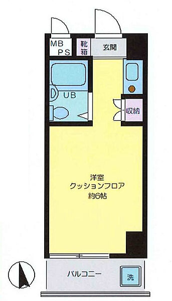 Esta propiedad presenta un diseño de estudio de una sola habitación (1R) altamente eficiente y compacto, pensado para una vida urbana optimizada. Al entrar, un corto pasillo incluye un zapatero exclusivo a la izquierda. Continuando por el pasillo, hay un espacio de trabajo de cocina funcional a la derecha y un clásico baño modular japonés de 3 piezas (que combina eficientemente la bañera, el lavabo y el inodoro en una sola habitación) a la izquierda. Junto a la cocina se encuentra un armario de almacenamiento empotrado. El pasillo se abre directamente a la sala de estar principal de estilo occidental, que cuenta con un suelo acolchado fácil de mantener. Este espacio principal tiene un tamaño de aproximadamente 6 esteras de tatami (unos 10 m² / 105 pies cuadrados). Al fondo de la habitación, se accede a un balcón privado con orientación sur, que incluye convenientemente el espacio exterior designado para la lavadora.