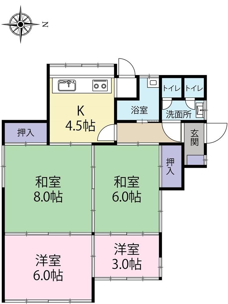 Cocina (Norte): Área de cocina compacta de 4.5 tatamis (aprox. 7 m² / 79 ft²).