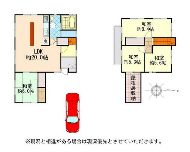 Dormitorios: Tres habitaciones de estilo japonés. La principal es de 8.4 tatamis (aprox. 14 m² / 146 ft²), acompañada por dos habitaciones más pequeñas de 5.6 tatamis (aprox. 9 m² / 98 ft²) y 5.3 tatamis (aprox. 8.5 m² / 93 ft²).