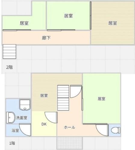 Primera Planta (Planta Baja) El recibidor conduce a una zona central de Comedor-Cocina (DK). Esta planta cuenta con dos habitaciones habitables ("Kyoshitsu"): una espaciosa habitación a la derecha (est. 10–13 m² / 107–140 ft²), ideal como sala de estar principal, y una segunda habitación junto a la escalera (est. 7–9 m² / 75–96 ft²). Las zonas húmedas están separadas: el cuarto de baño y la zona de lavabo/lavandería están a la izquierda, mientras que el aseo (WC) es independiente y se encuentra cerca de la entrada a la derecha. Segunda Planta El nivel superior está diseñado para la privacidad, con un pasillo que conecta tres habitaciones separadas: Habitación Izquierda: Un cuarto compacto (est. 7–9 m² / 75–96 ft²), adecuado como dormitorio infantil u oficina. Habitación Central: Una habitación de tamaño estándar (est. 9–10 m² / 96–107 ft²). Habitación Derecha: La habitación más grande de esta planta (est. 10–13 m² / 107–140 ft²), ideal como dormitorio principal.