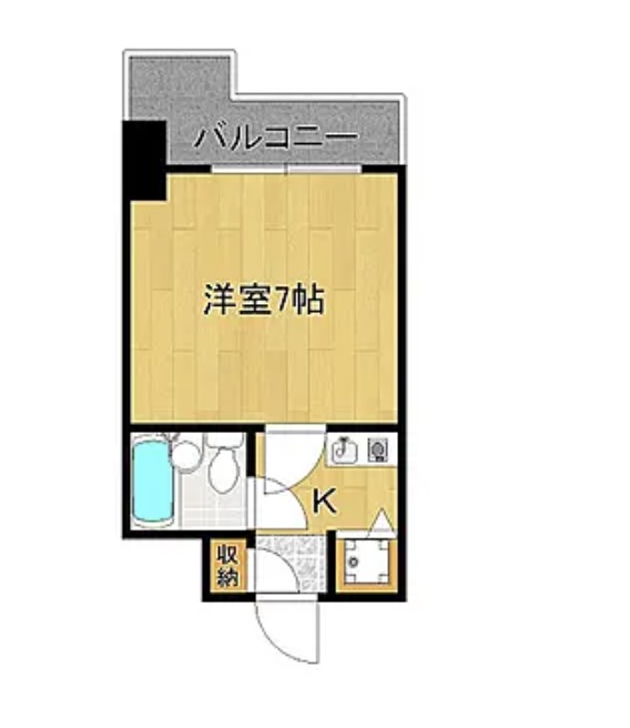 La propiedad presenta una distribución 1K (1 Habitación + Cocina) altamente funcional y compacta, diseñada para una vida individual óptima. Al entrar, el pasillo da acceso a un práctico armario de almacenamiento empotrado a la izquierda y conduce directamente a la zona de la cocina. Adyacente a la cocina se encuentra un baño en unidad integrado que contiene tanto una bañera como un inodoro. El espacio habitable principal es una habitación de estilo occidental bien proporcionada que mide aproximadamente 11 m² (122 ft²), equivalente a 7 esteras de tatami, lo que ofrece un espacio flexible para una cama, un escritorio y un área de relajación. Esta habitación cuenta con pisos de madera y se abre directamente a un balcón privado en el extremo del apartamento, lo que permite que la luz natural y el aire fresco llenen el espacio.