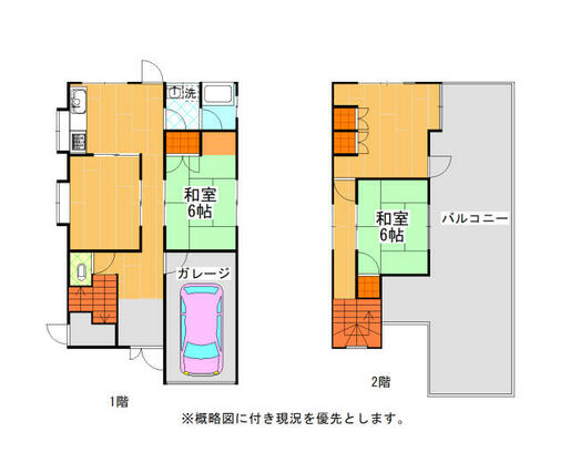 La propiedad ofrece una distribución funcional de tipo 4DK distribuida en dos plantas. La planta baja cuenta con un garaje integrado con persiana y acceso interno directo. Incluye un área de comedor y cocina, un espacio de estar independiente y una habitación tradicional japonesa de 6 tatamis (aprox. 10 m² / 108 ft²). Las zonas de servicio están organizadas de manera eficiente, con un área de lavandería dedicada, un aseo separado y un baño privado. La segunda planta dispone de dos dormitorios adicionales bien proporcionados, incluyendo otra habitación japonesa de 6 esteras (aprox. 10 m² / 108 ft²) y una versátil habitación de estilo occidental. El elemento más destacado de este nivel es el balcón en forma de L excepcionalmente grande, que rodea el lateral de la casa, ofreciendo un amplio espacio exterior para el descanso, la jardinería o el almacenamiento.