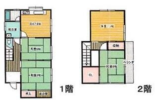Esta casa de dos plantas presenta una distribución funcional. La primera planta (1F) alberga la zona de día, con un comedor-cocina (DK) de 7.5 tatamis, dos habitaciones tradicionales de estilo japonés (de 8 y 6 tatamis) y la zona de aguas (baño y aseo). La segunda planta (2F) está dedicada al descanso, ofreciendo una habitación de estilo japonés de 6 tatamis y una habitación de estilo occidental de 7.5 tatamis. Este nivel también cuenta con un balcón y espacio de armario adicional.