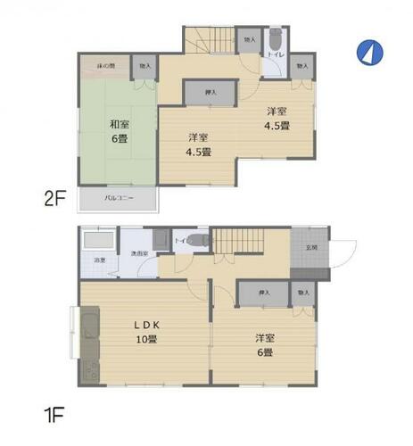 Esta funcional casa de dos plantas con distribución 4LDK (4 habitaciones más sala, comedor y cocina) combina a la perfección espacios modernos y tradicionales. La primera planta cuenta con un pasillo de entrada que conduce a una amplia zona de estar, comedor y cocina de concepto abierto de aproximadamente 17 m² (178 pies cuadrados). Adyacente a esta zona se encuentra una habitación de estilo occidental de 10 m² (107 pies cuadrados) con armario empotrado. Un cuarto de baño completo, una sala de lavabos y un aseo independiente están convenientemente situados en este nivel. La segunda planta ofrece la comodidad añadida de un segundo aseo y cuenta con tres dormitorios distintos: dos habitaciones de estilo occidental de 7 m² (80 pies cuadrados) con armarios, y una habitación tradicional de estilo japonés con suelo de tatami de 10 m² (107 pies cuadrados). Esta habitación japonesa incluye un nicho decorativo (tokonoma), amplio espacio de almacenamiento y acceso directo a un balcón privado.