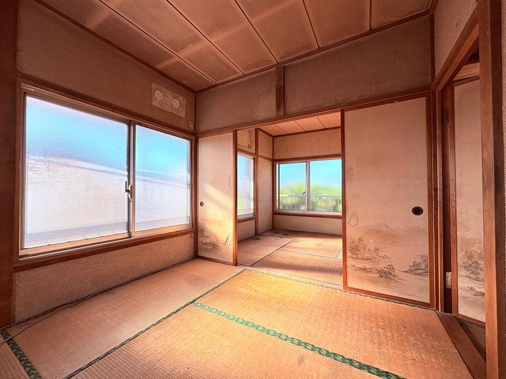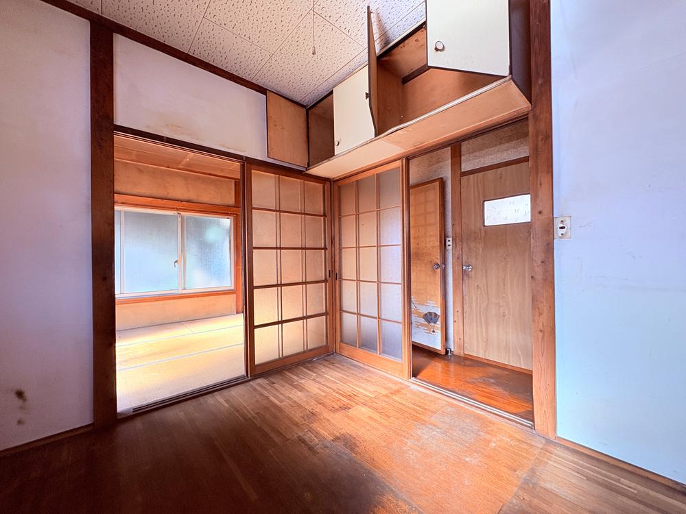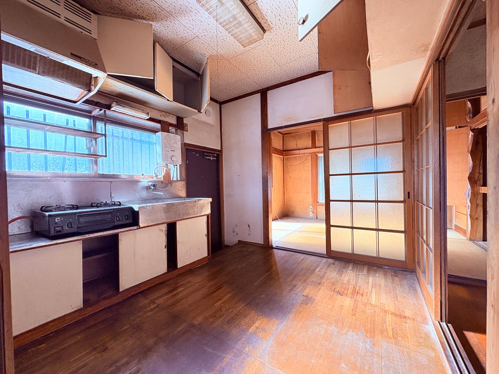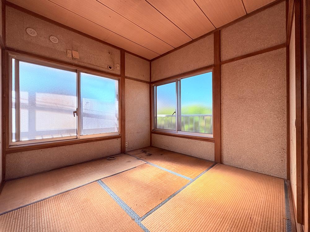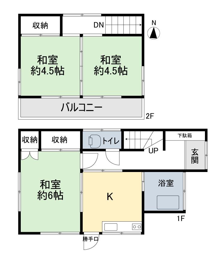 Esta casa compacta de dos plantas con distribución 3K ofrece un diseño tradicional y funcional. En la primera planta, la entrada principal cuenta con un zapatero y conduce directamente a un aseo y un cuarto de baño ubicados de forma independiente. El centro de la planta baja está dedicado al área de la cocina, que incluye convenientemente una puerta trasera para acceso al exterior. Adyacente a la cocina se encuentra una habitación tradicional japonesa con suelo de tatami (aprox. 10 m² / 105 ft²), equipada con dos amplios armarios empotrados. La segunda planta consta de dos habitaciones japonesas separadas con tatami, cada una de aproximadamente 7 m² (78 ft²). Ambas habitaciones de la planta superior disfrutan de acceso directo a un balcón compartido orientado al sur, y la habitación del lado izquierdo cuenta con un espacio de almacenamiento empotrado adicional.
